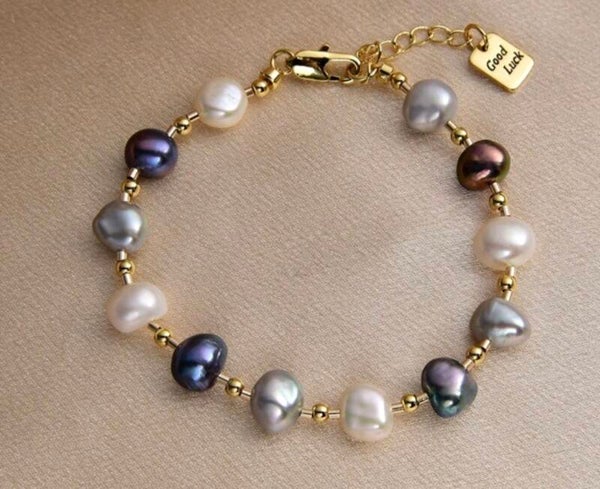 Bracelet perle d'eau douce, grise, blanche, blanc et gris, ou blanc et rose